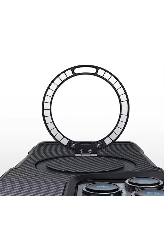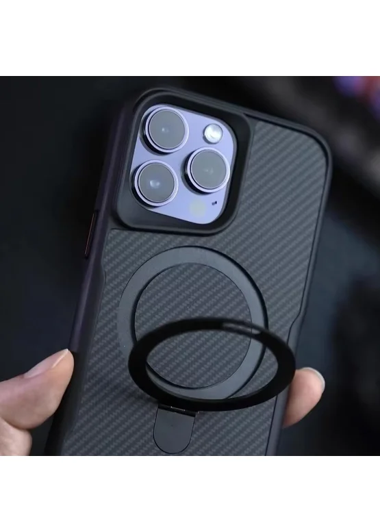 TPU+PC чохол Metal Buttons with MagSafe Carbon Ring для Apple iPhone 15 Pro (6.1") Чорний