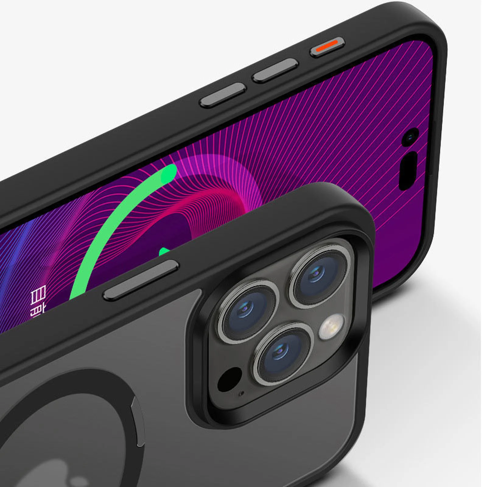 TPU+PC чохол Metal Buttons with MagSafe Colorful HQ Ring для Apple iPhone 15 Pro (6.1") Black