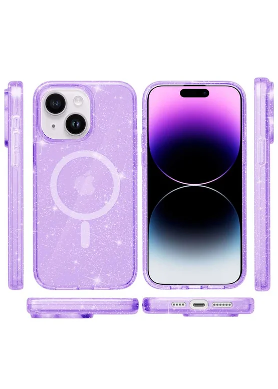 Чохол TPU Galaxy Sparkle (MagFit) для Apple iPhone 15 (6.1") Purple+Glitter