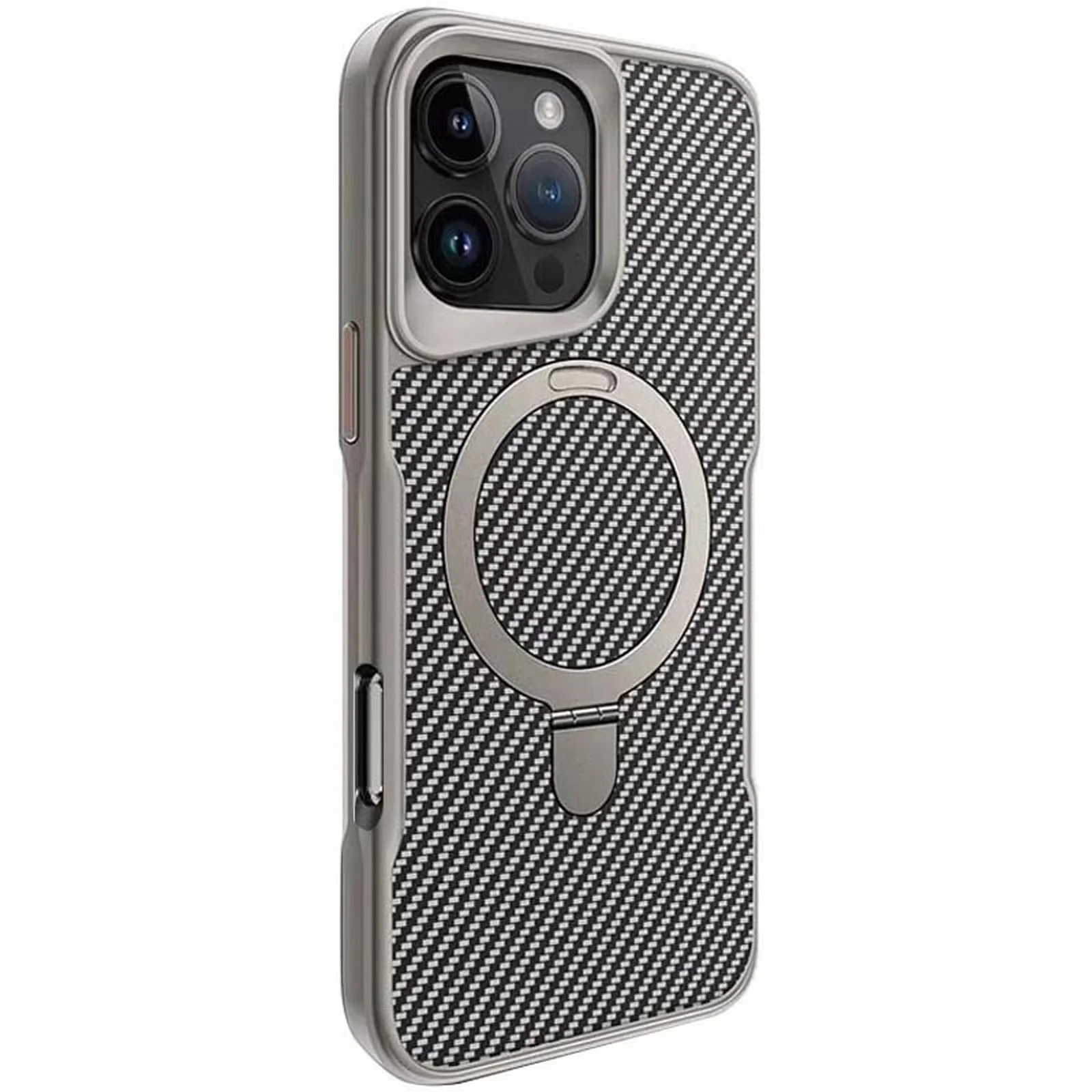 TPU+PC чохол Metal Buttons with MagSafe Carbon Ring для Apple iPhone 16 Pro (6.3") Сірий