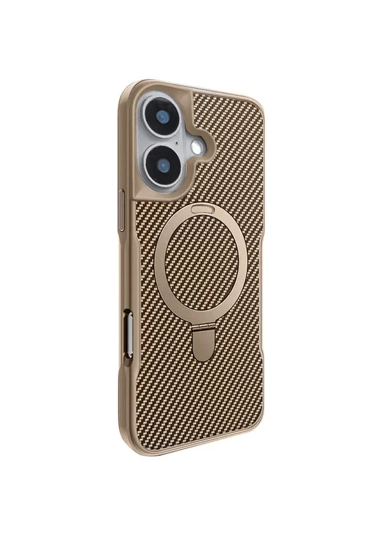 TPU+PC чохол Metal Buttons with MagSafe Carbon Ring для Apple iPhone 16 (6.1") Золотий
