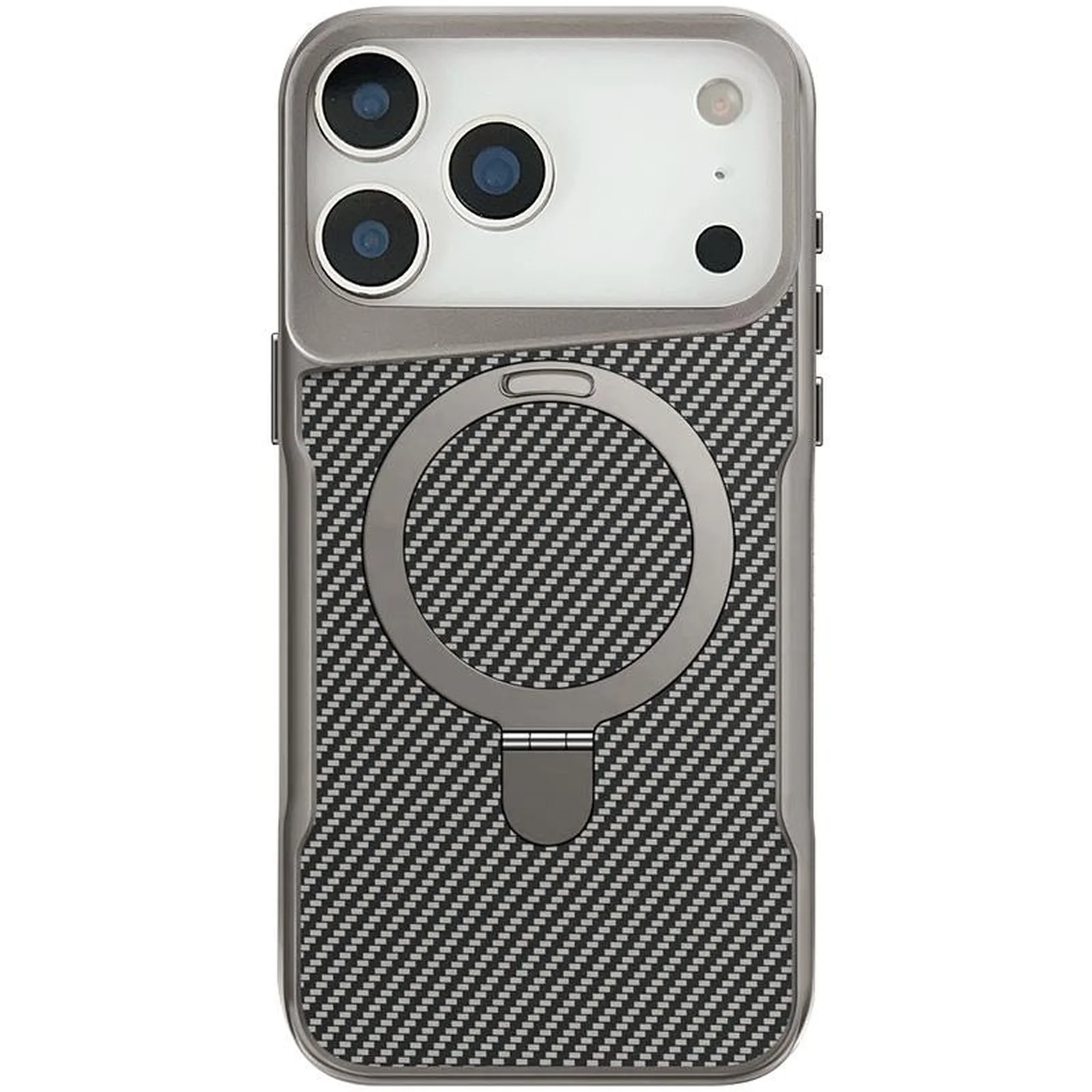TPU+PC чохол Metal Buttons with MagSafe Carbon Ring для Apple iPhone 17 Pro Max (6.9") Сірий
