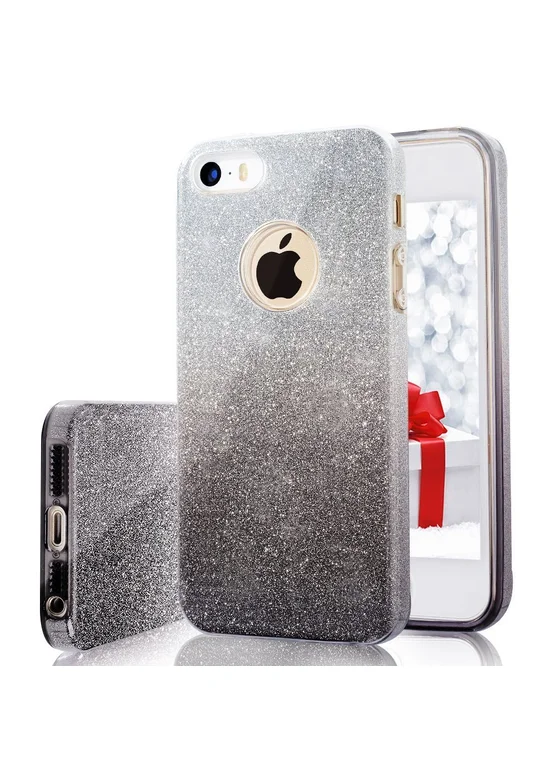 Силіконовий чохол з блискітками "Градієнт" чорний для iPhone 5 / 5S / SE