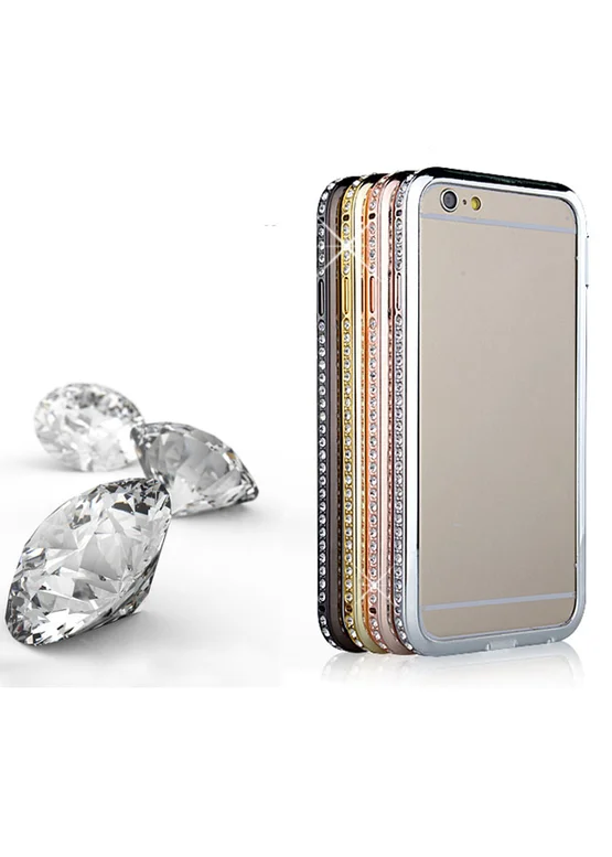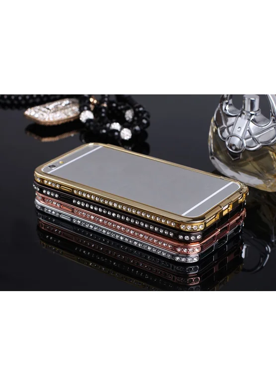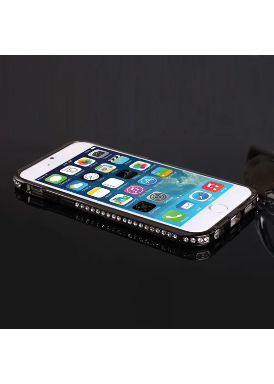 Алюмінієвий чорний бампер зі стразами для iPhone 6 / 6S