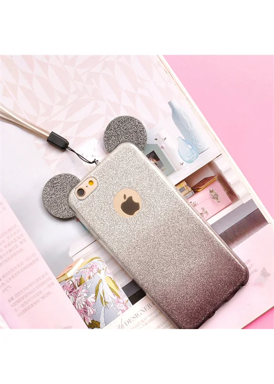Силіконовий чохол з блискітками "Міккі Маус" чорний градієнт для iPhone 6 / 6S