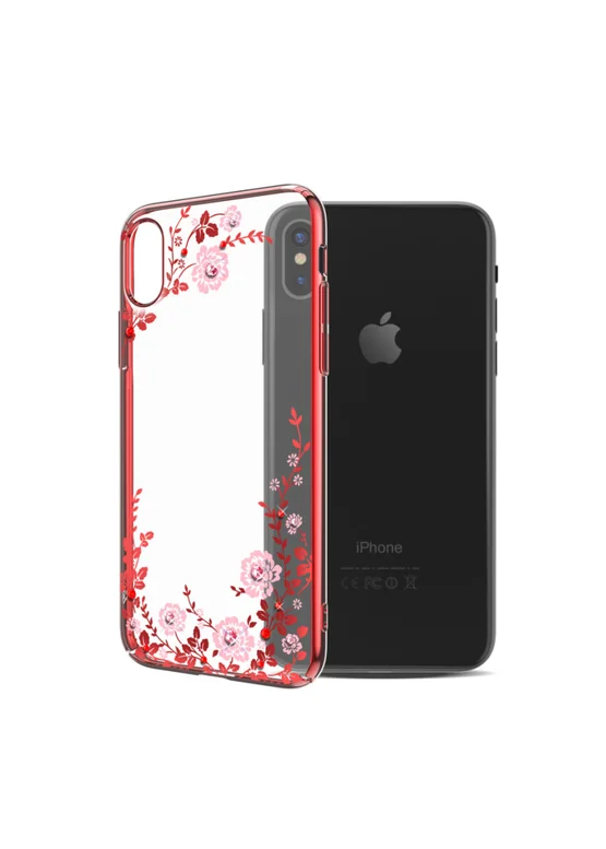Пластиковий чохол зі стразами SWAROVSKI "Kingxbar" Flora червоний для iPhone X