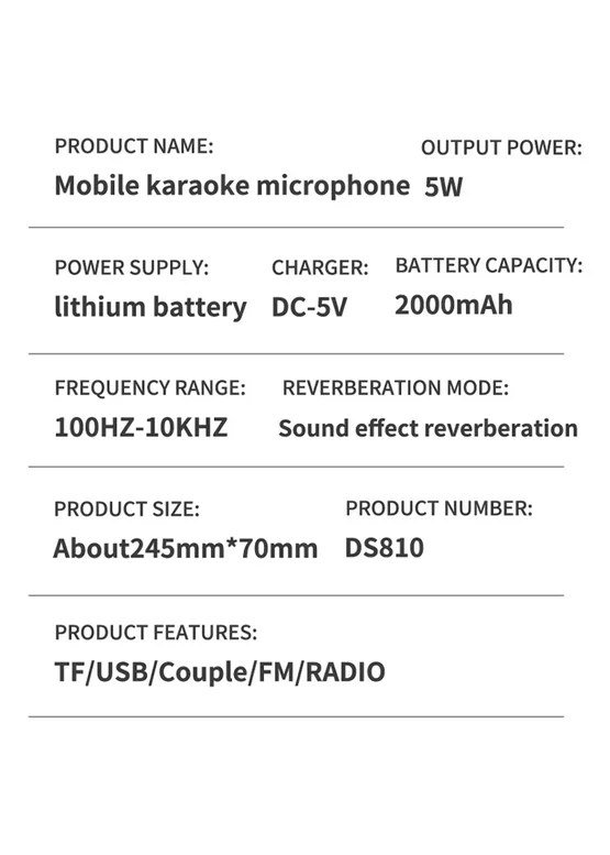 Мікрофон-колонка оснащена літієво-полімерним акумулятором 18650 ємністю 1200 мАг.