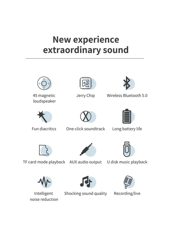 Караоке Мікрофон-колонка оснащений вбудованим динаміком потужністю 3W, що забезпечує чисте та якісне звучання.