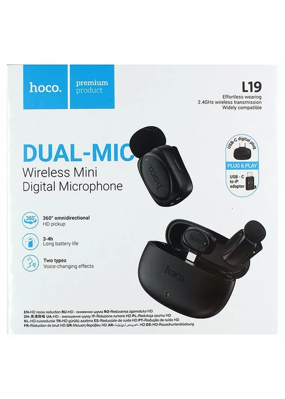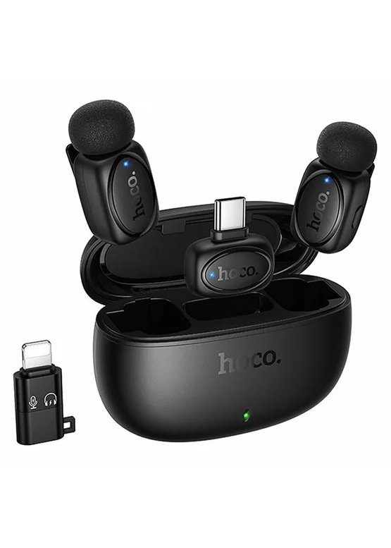 Петличний бездротовий мікрофон Hoco L19 Graceful dual-mic 2in1 (Lightning/Type-C) Black