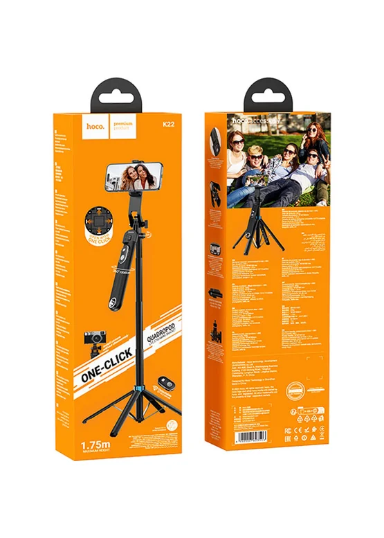 Монопод для селфі Hoco K22 Anti-shake з триногами + знімний BT пульт Black