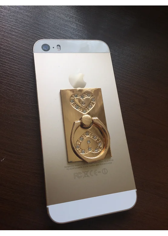 Красиве золоте кільце-тримач для додаткової фіксації смартфона в руці. Це дуже корисний і зручний аксесуар який дозволить Вам додатково застрахуватися від пошкоджень Вашого дорогоцінного iPhone. З таким зручним і захисним аксесуаром Ваш iPhone прослужить Вам набагато більше часу. Якщо Ви будете користуватися кільцем-утримувачем, то ніколи не упустите свій смартфон, тим самим не пошкодити його. Крім того дане кільце-тримач красивого і яскравого золотого кольору, прикрашене блискучими сердечками. Що досить мило і витончено виглядає на Вашому iPhone.
