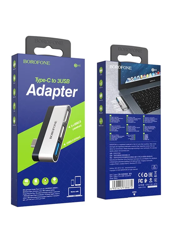Перехідник Borofone DH1 Type-C to USB Чорний / Срібний