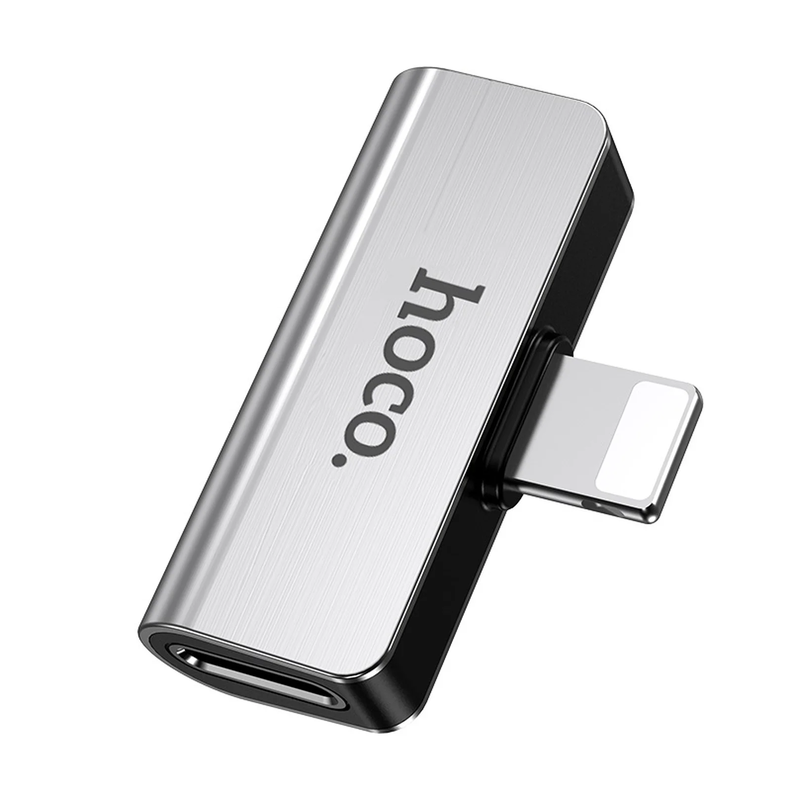 Перехідник Hoco LS24 Lightning to lightning audio / lightning (Сталевий)