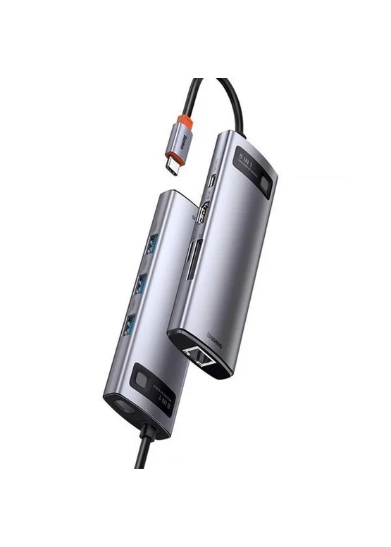 Перехідник HUB Baseus Metal Gleam Series 7-Port (Type-C to HDMI+USB3.0*3+PD+RJ45) (B0003070)
