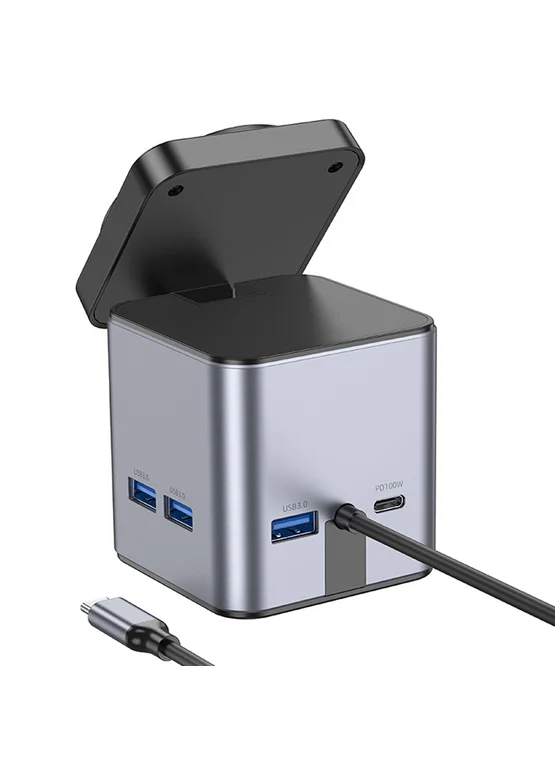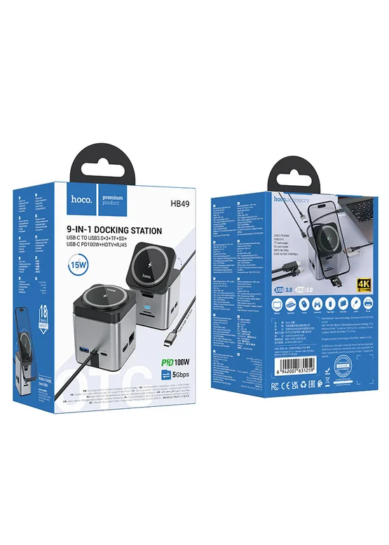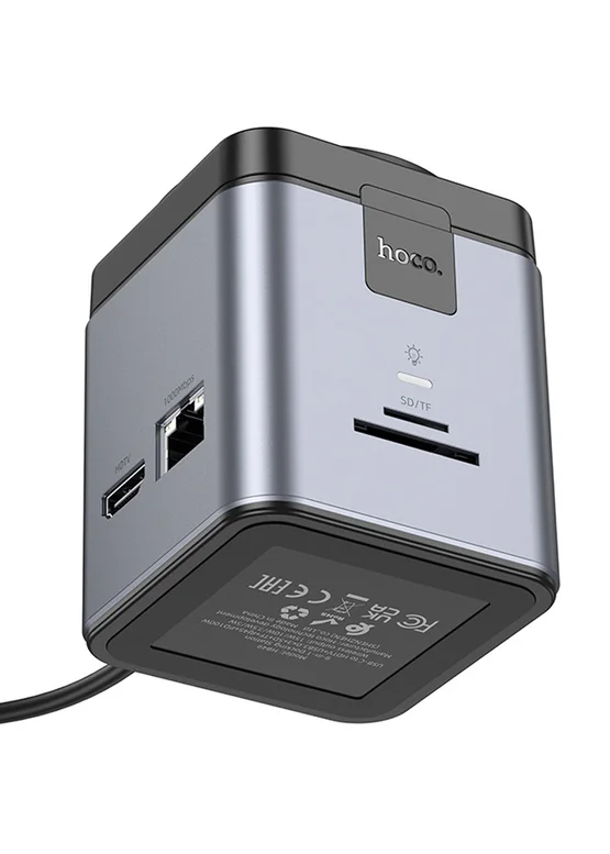 Перехідник HUB Hoco HB49 Effortless 9in1 100W із БЗУ Metal gray