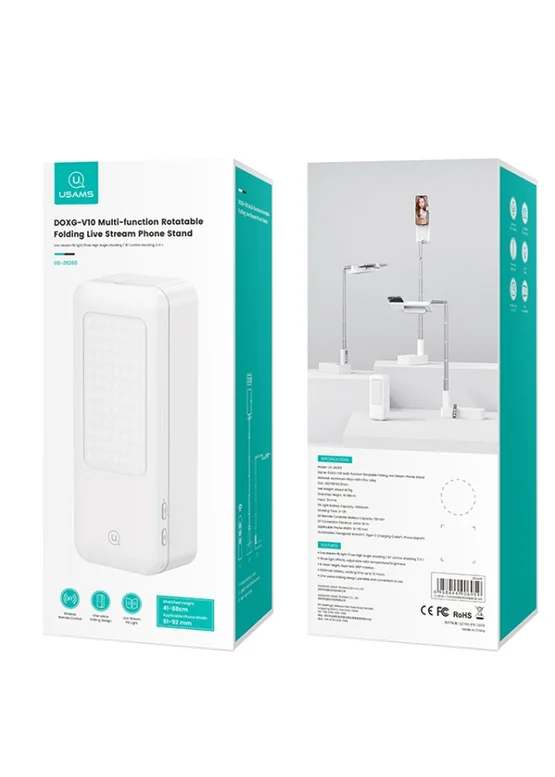 Підставка-тримач настільний USAMS US-ZB265 Multi-function Rotatable Folding Storage Live Stream White