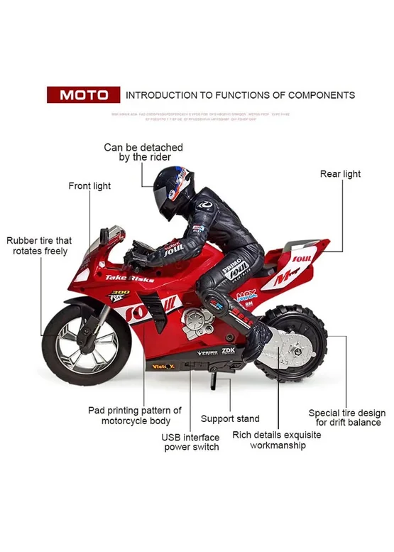 Мотоцикл може виконувати різні трюки, такі як обертання на місці, дрифт, швидкий розгін і гальмування.