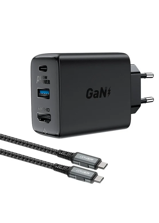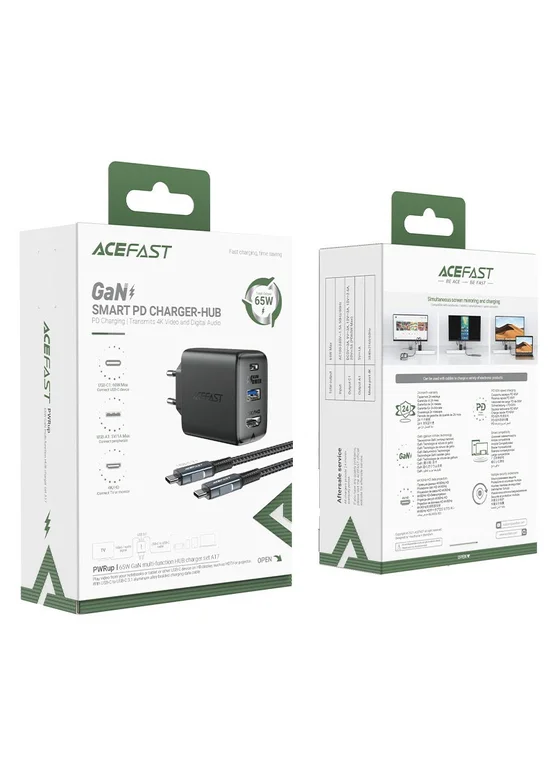 СЗУ Acefast A17 65W GaN multi-function HUB + кабель Type-C to Type-C Black