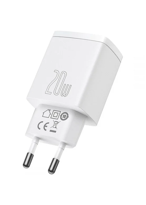 СЗУ Baseus Compact Quick Charger 20W QC + PD (Type-C + 1USB) (CCXJ-B) White
