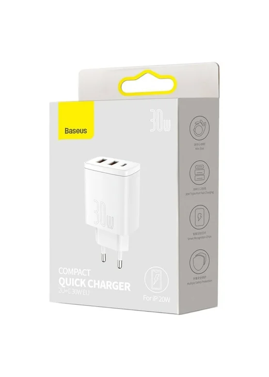 СЗУ Baseus Compact Quick Charger 30W QC+ PD (1Type-C + 2USB) (CCXJ-E) Білий
