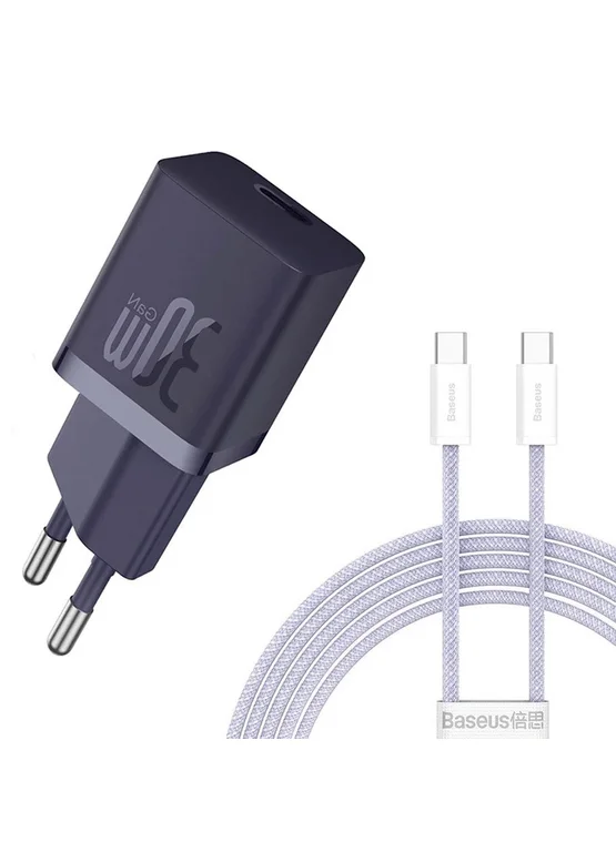 СЗУ Baseus GaN5 Fast Charger (mini) 30W (1USB-C) + кабель Type-C to Type-C (P10110902) Midnight Purple