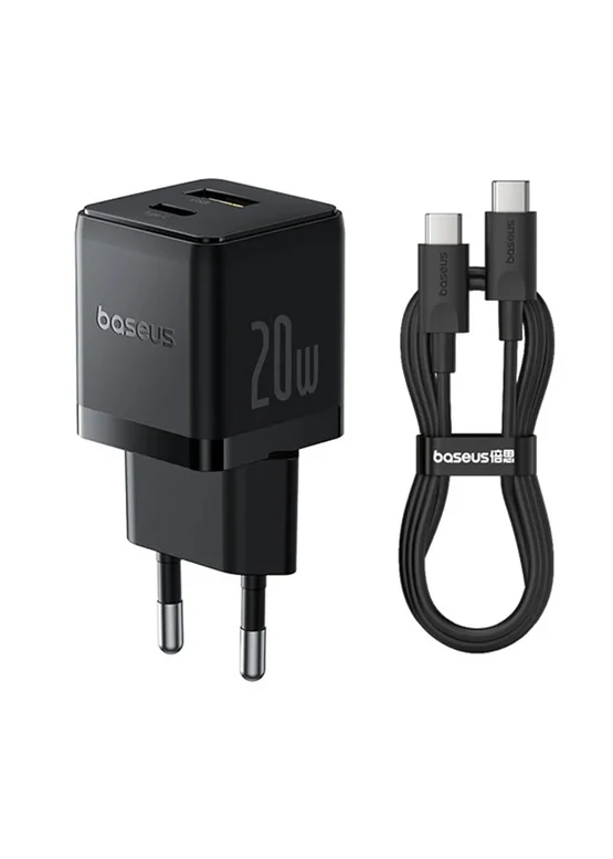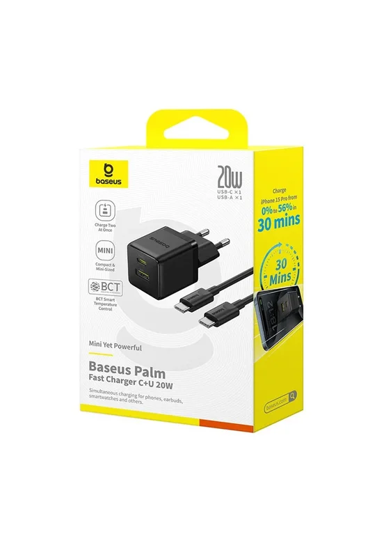 СЗУ Baseus Palm Fast Charger 20W (1USB-A/1C) + кабель Type-C to Type-C (P10111608) Cluster Black