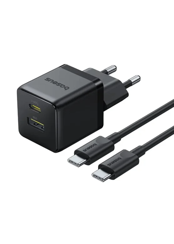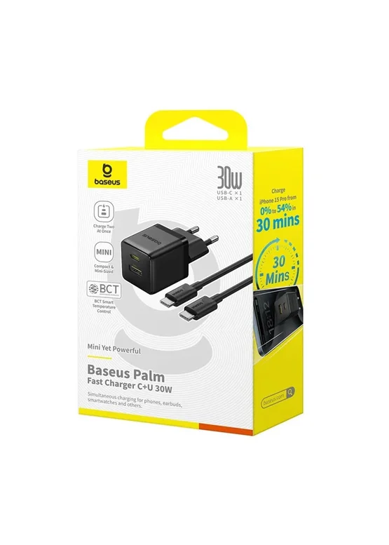 СЗУ Baseus Palm Fast Charger 30W (1USB-A/1C) + кабель Type-C to Type-C (P1011160A) Cluster Black
