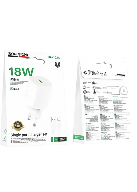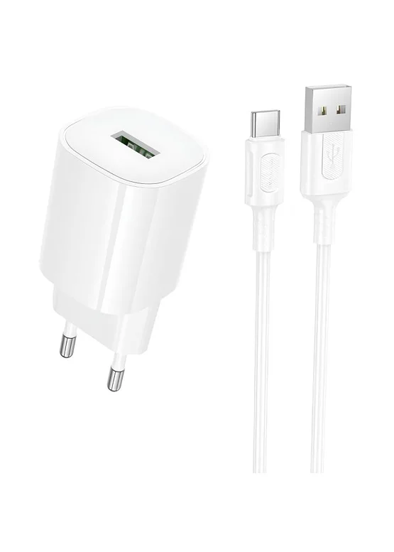 СЗУ Borofone BA102A Pudding QC3.0 (1USB-A) + кабель USB to Type-C White