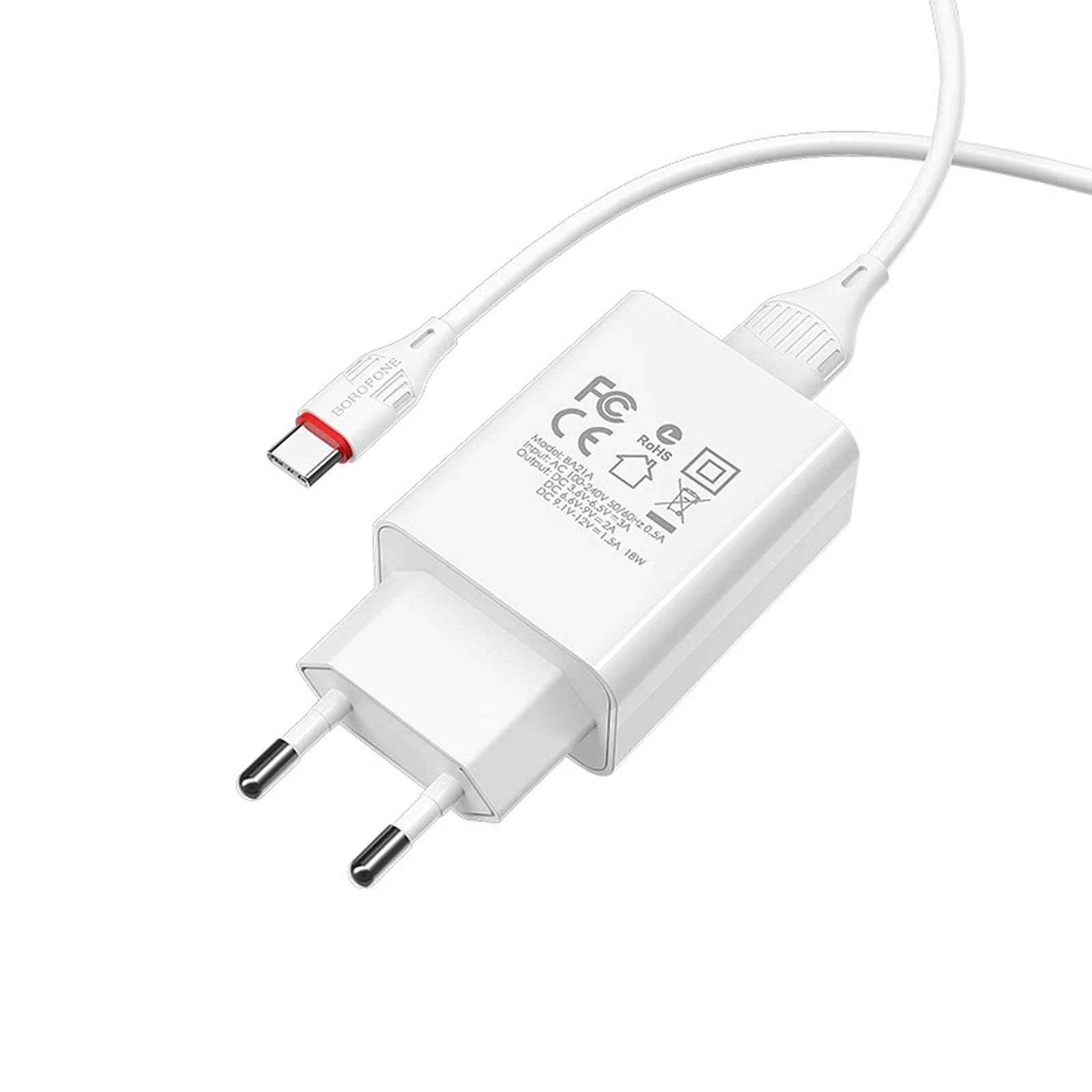 СЗУ Borofone BA21A Long journey QC3.0 (1USB/3A) + Type-C Білий