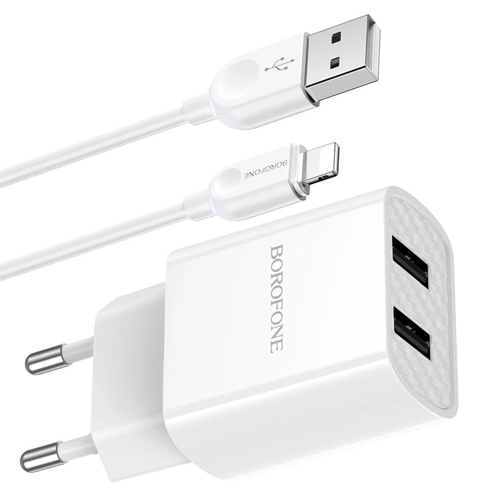 СЗУ Borofone BA53A Powerway (2USB/2.1A) + Lightning Білий