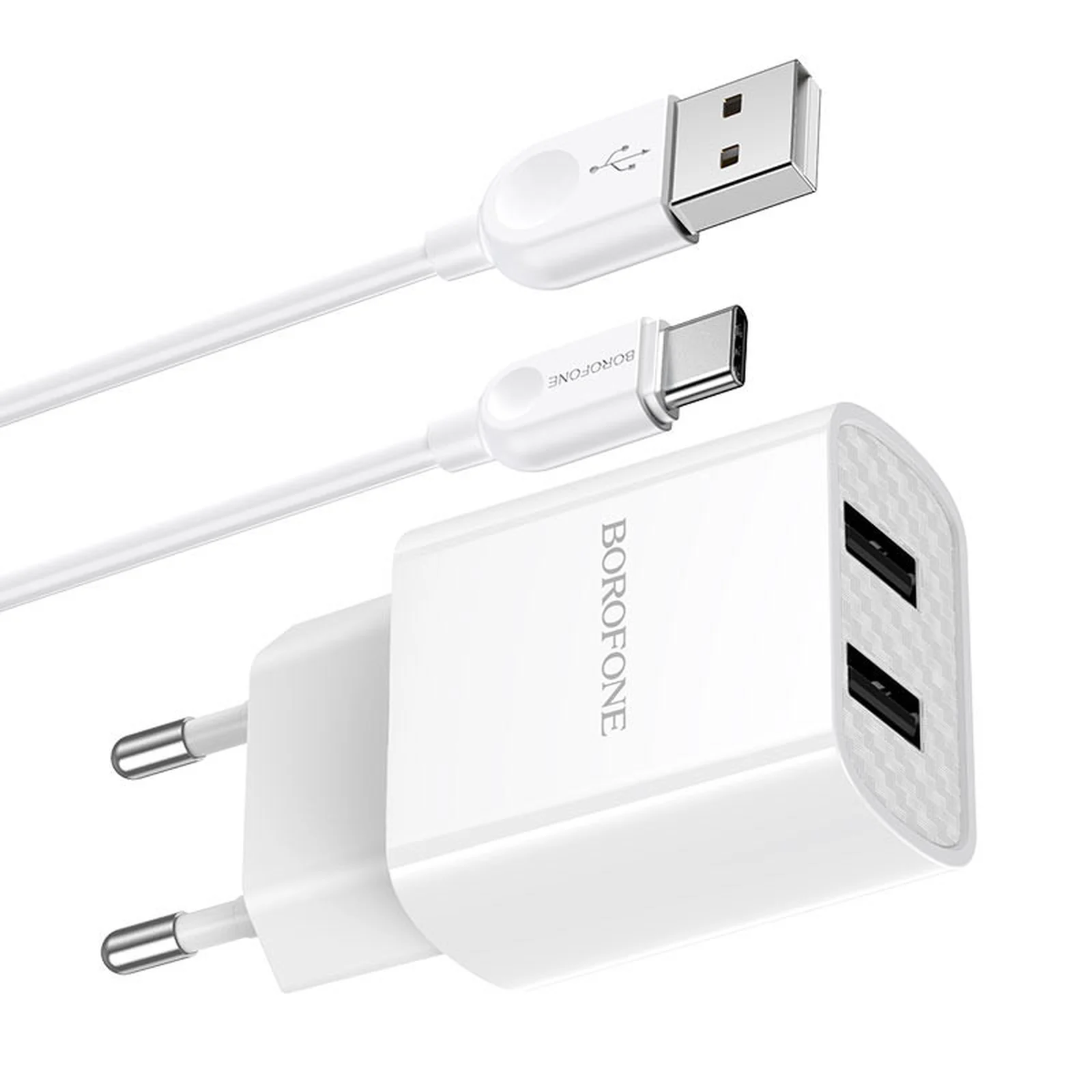 СЗУ Borofone BA53A Powerway (2USB/2.1A) + Type-C Білий