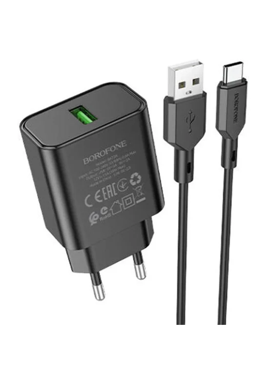 СЗУ Borofone BA72A Spring QC3.0 USB to Type-C Black
