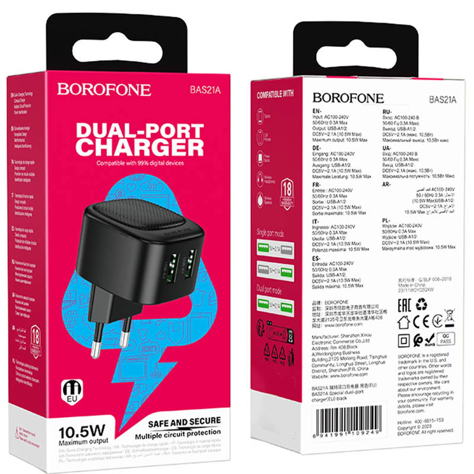 СЗУ Borofone BAS21A Special (2A) Black