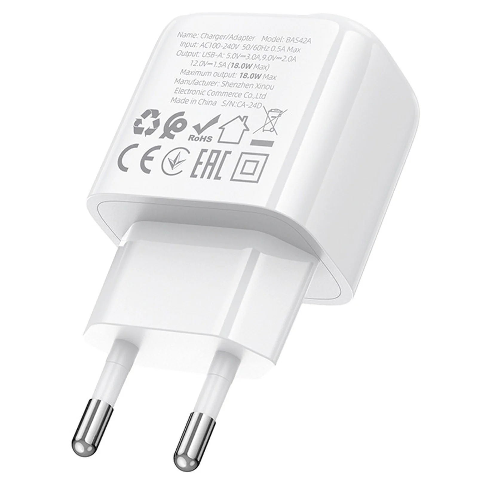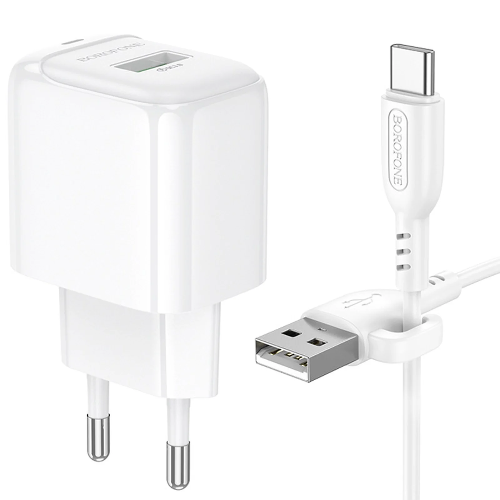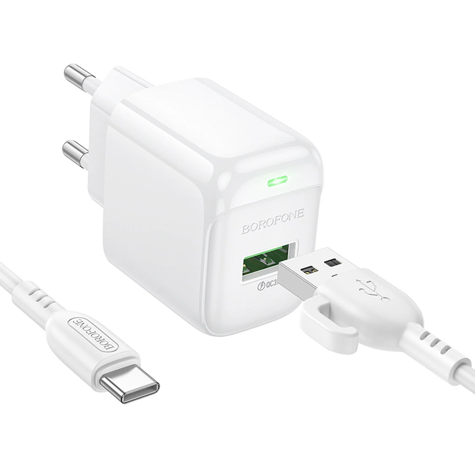 СЗУ Borofone BAS42A Potential QC3.0 (1USB-A) + Type-C White