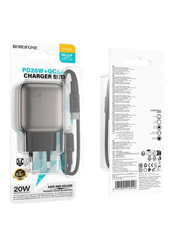 СЗУ Borofone BAS54A Absolute PD20W+QC3.0 (1USB-A/1C) + Type-C to Lightning Black