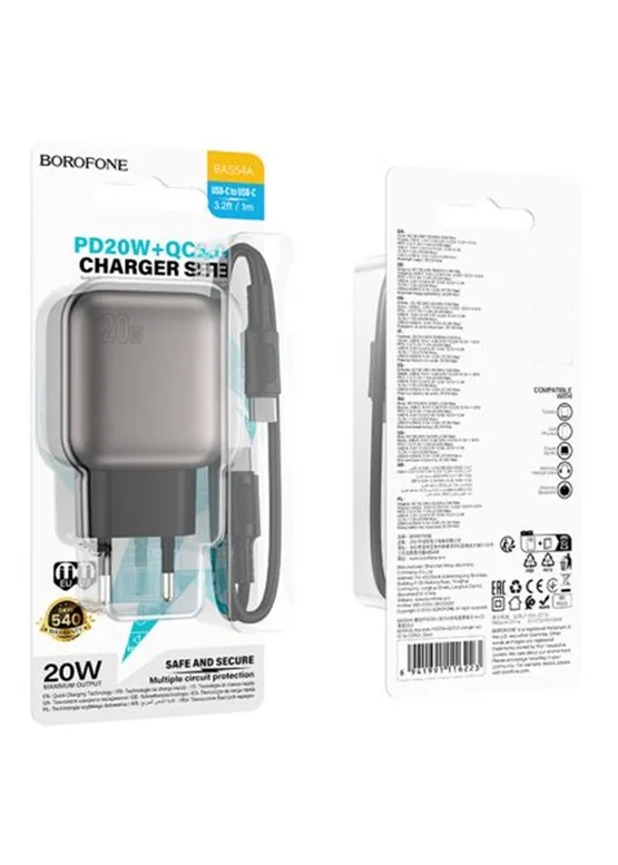СЗУ Borofone BAS54A Absolute PD20W+QC3.0 (1USB-A/1C) + Type-C to Type-C Black