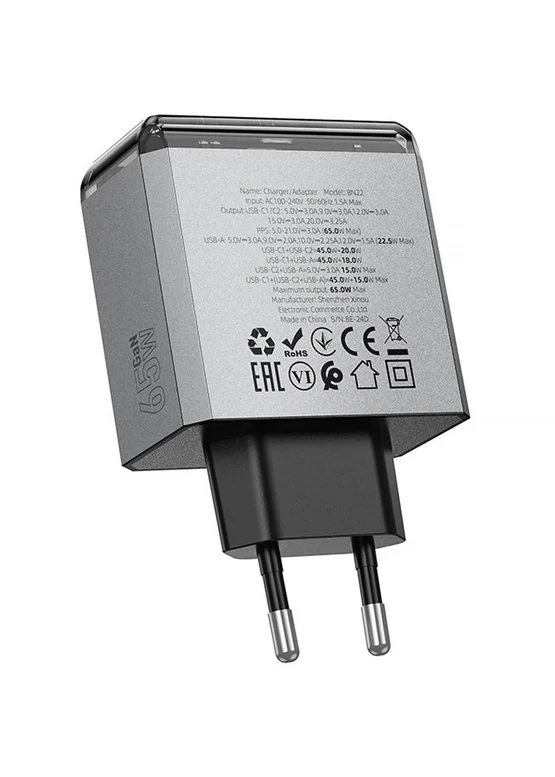 СЗУ Borofone BN22 Lena PD65W (1USB-A/2C) Metal gray
