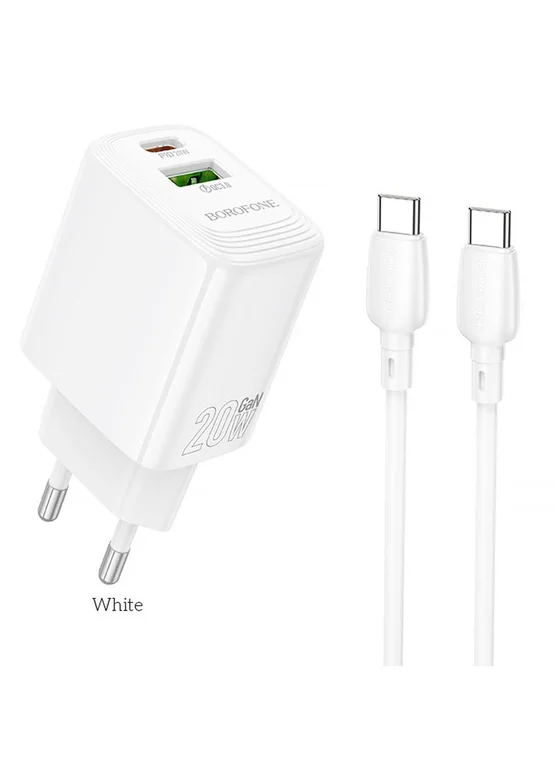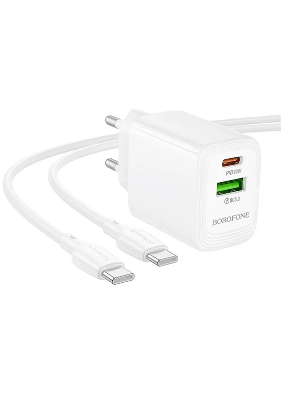 СЗУ Borofone BN27 Fuente PD20W+QC3.0 (1USB-A/1C) + кабель Type-C to Type-C
