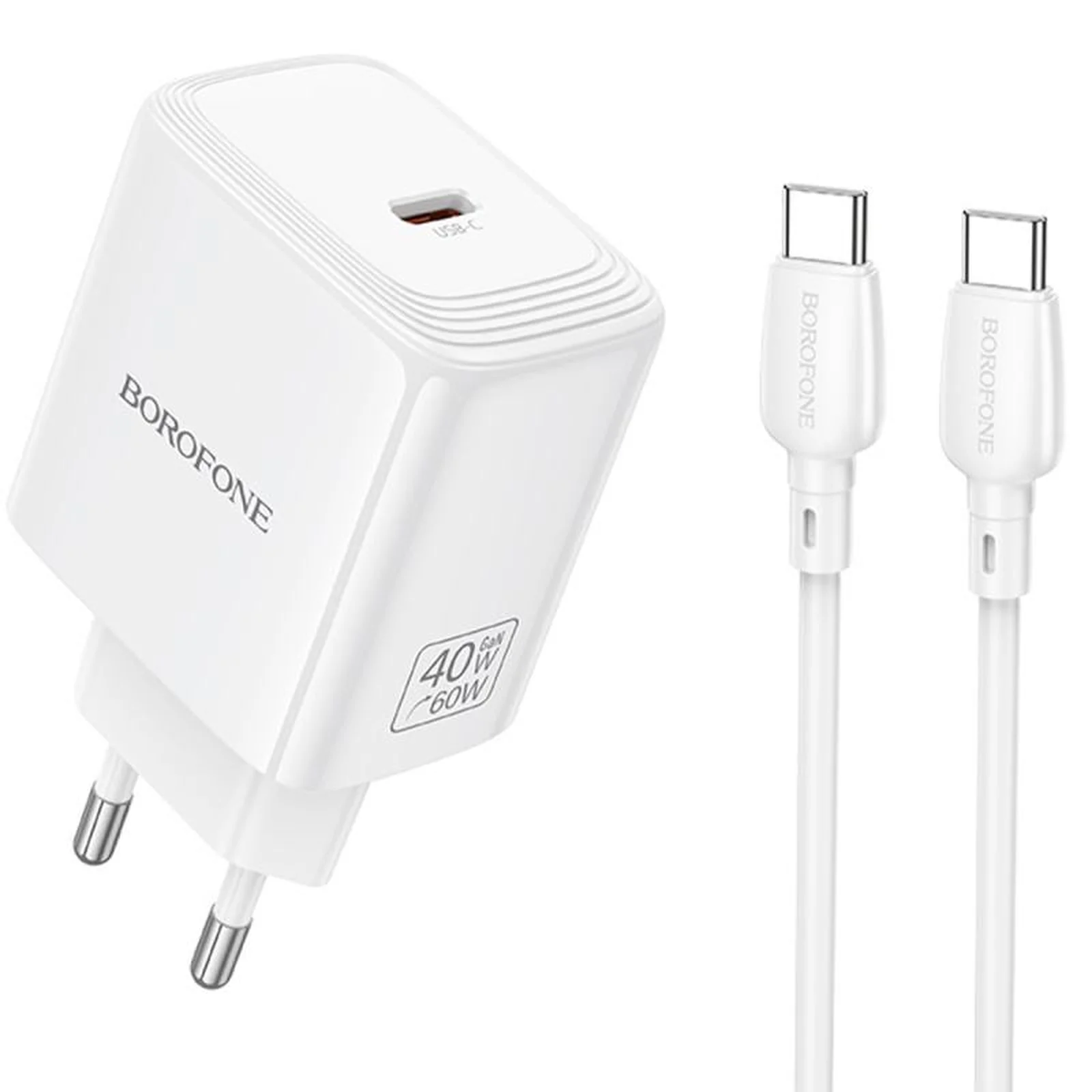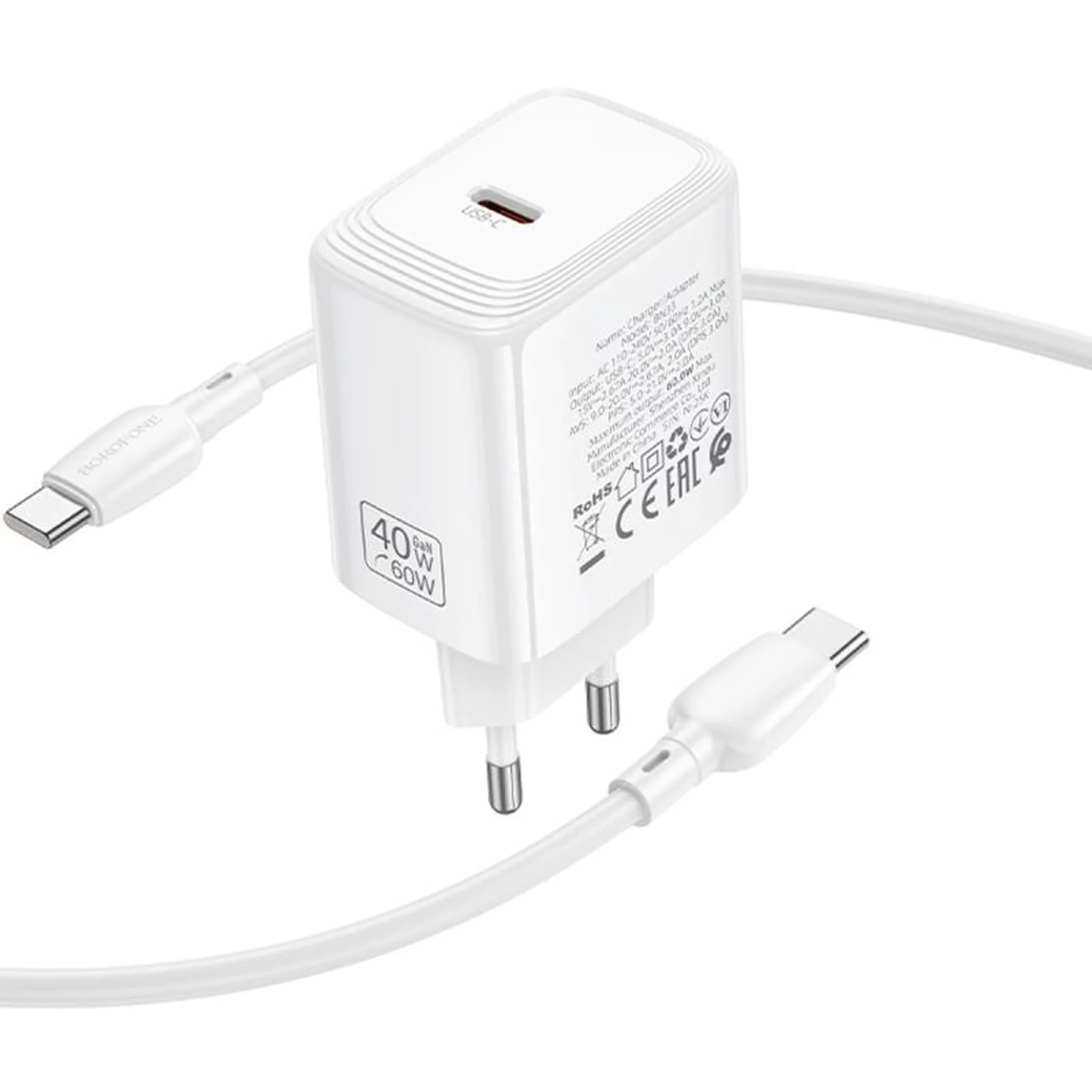 СЗУ Borofone BN33 Fuente PD40W (1USB-C) + кабель Type-C to Type-C White