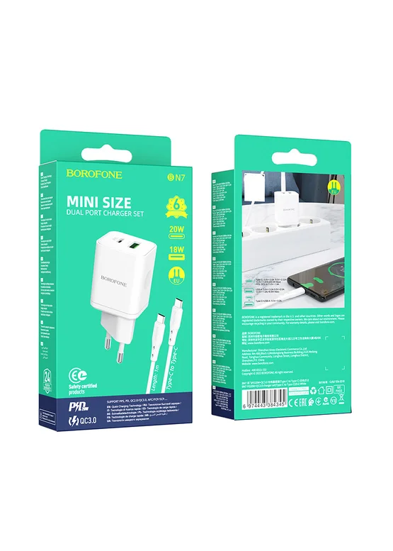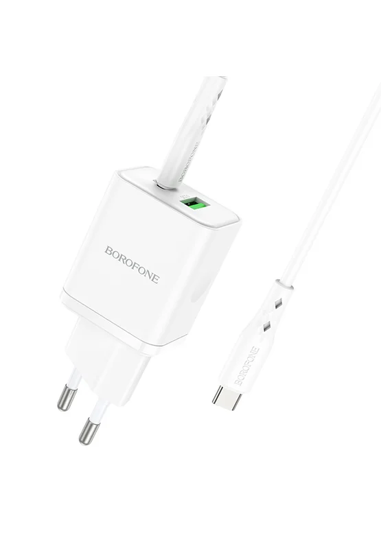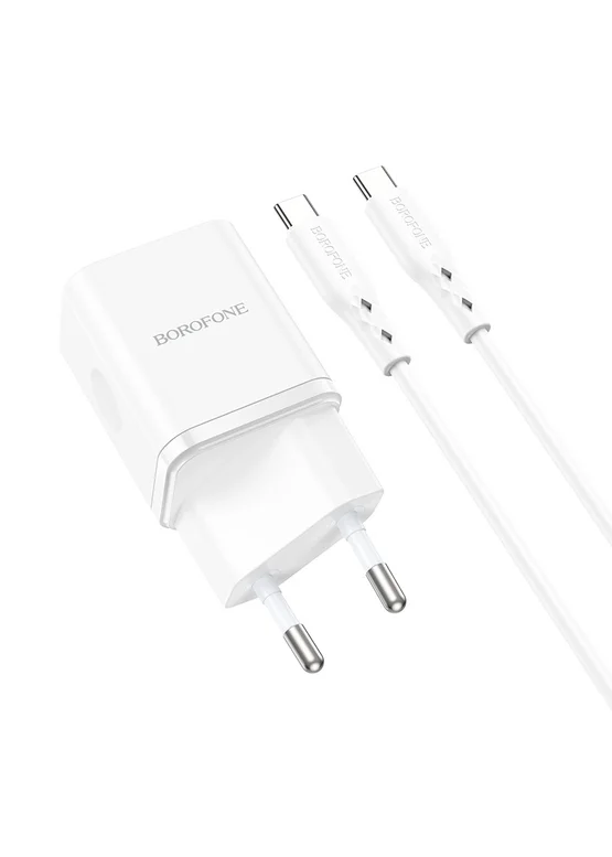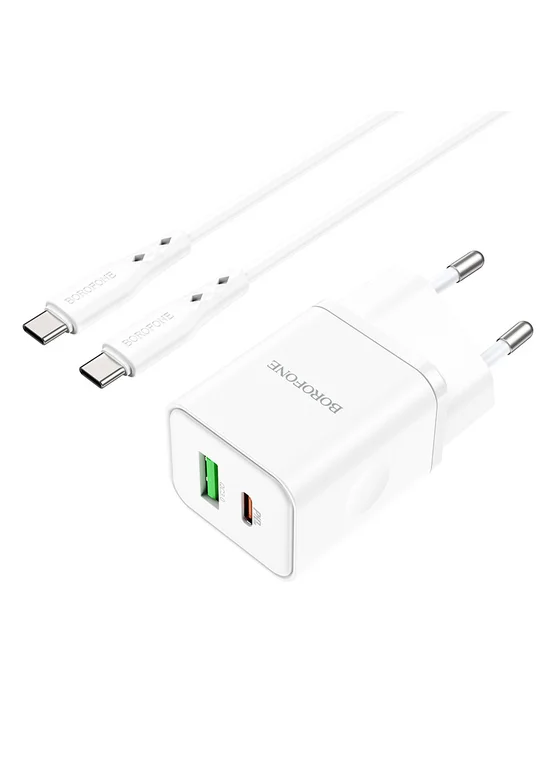 СЗУ Borofone BN7 PD20W+QC3.0 (1USB-A/1C) + кабель Type-C to Type-C White