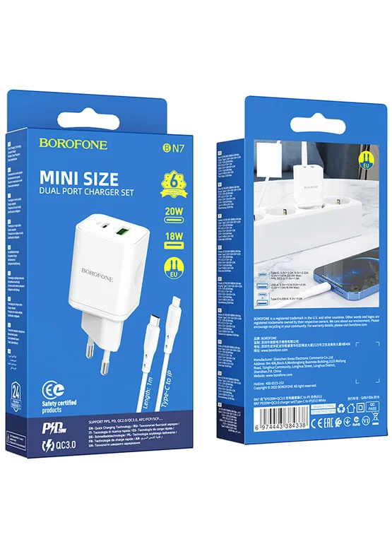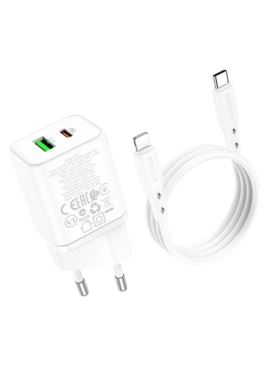 СЗУ Borofone BN7 PD20W+QC3.0 (1USB-A/1C) + Type-C to Lightning White