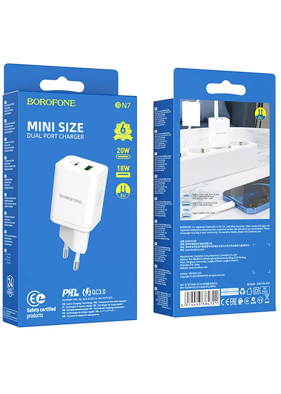 СЗУ Borofone BN7 PD20W+QC3.0 (1USB-A/1C) White