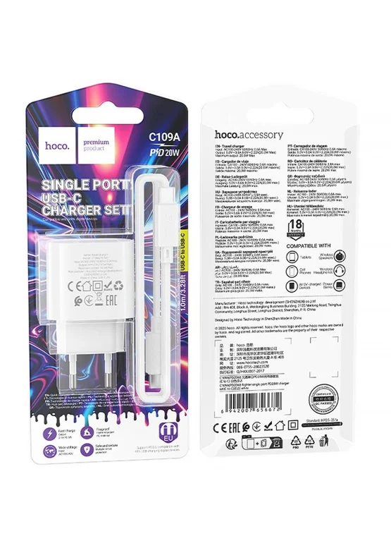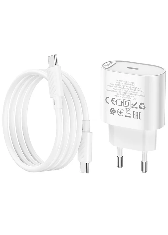 СЗУ Hoco C109A Fighter PD20W (1USB-C) + кабель Type-C to Type-C White