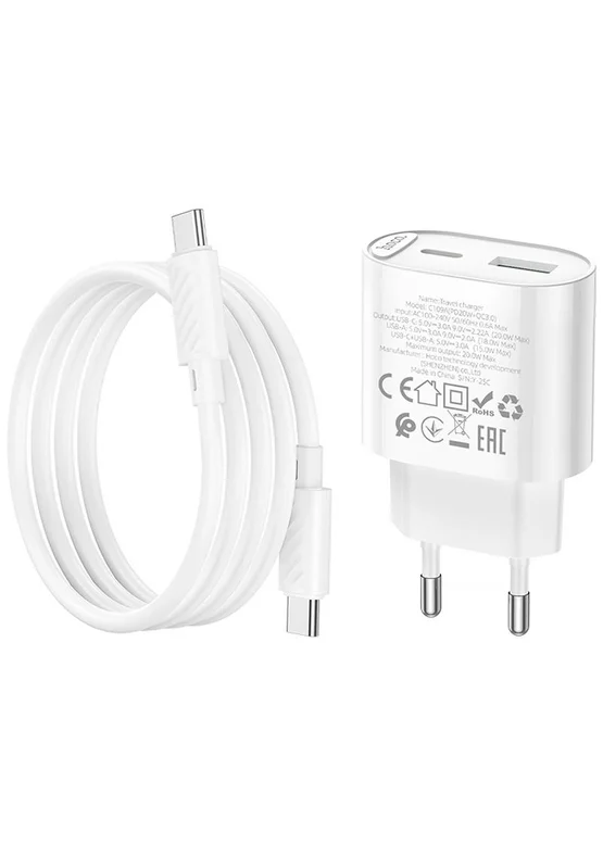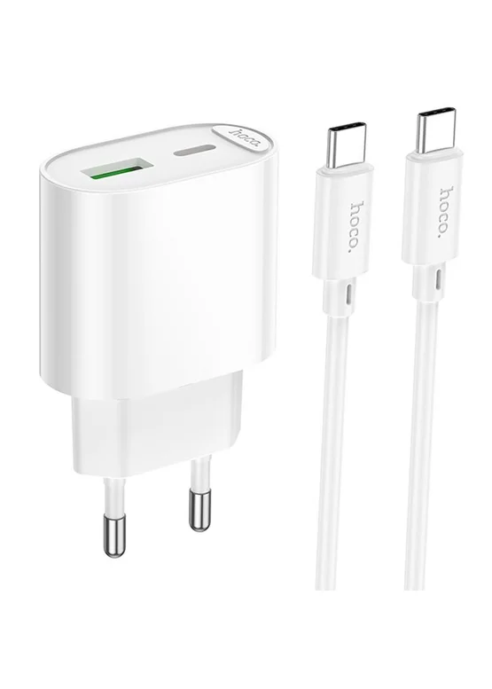 СЗУ Hoco C109A Fighter PD20W+QC3.0 (1USB-A/1C) + кабель Type-C to Type-C White