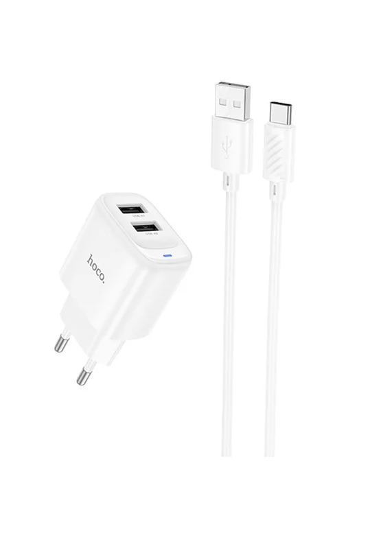 СЗУ Hoco C141A Smart 2.1A (2USB-A) + кабель USB to Type-C White