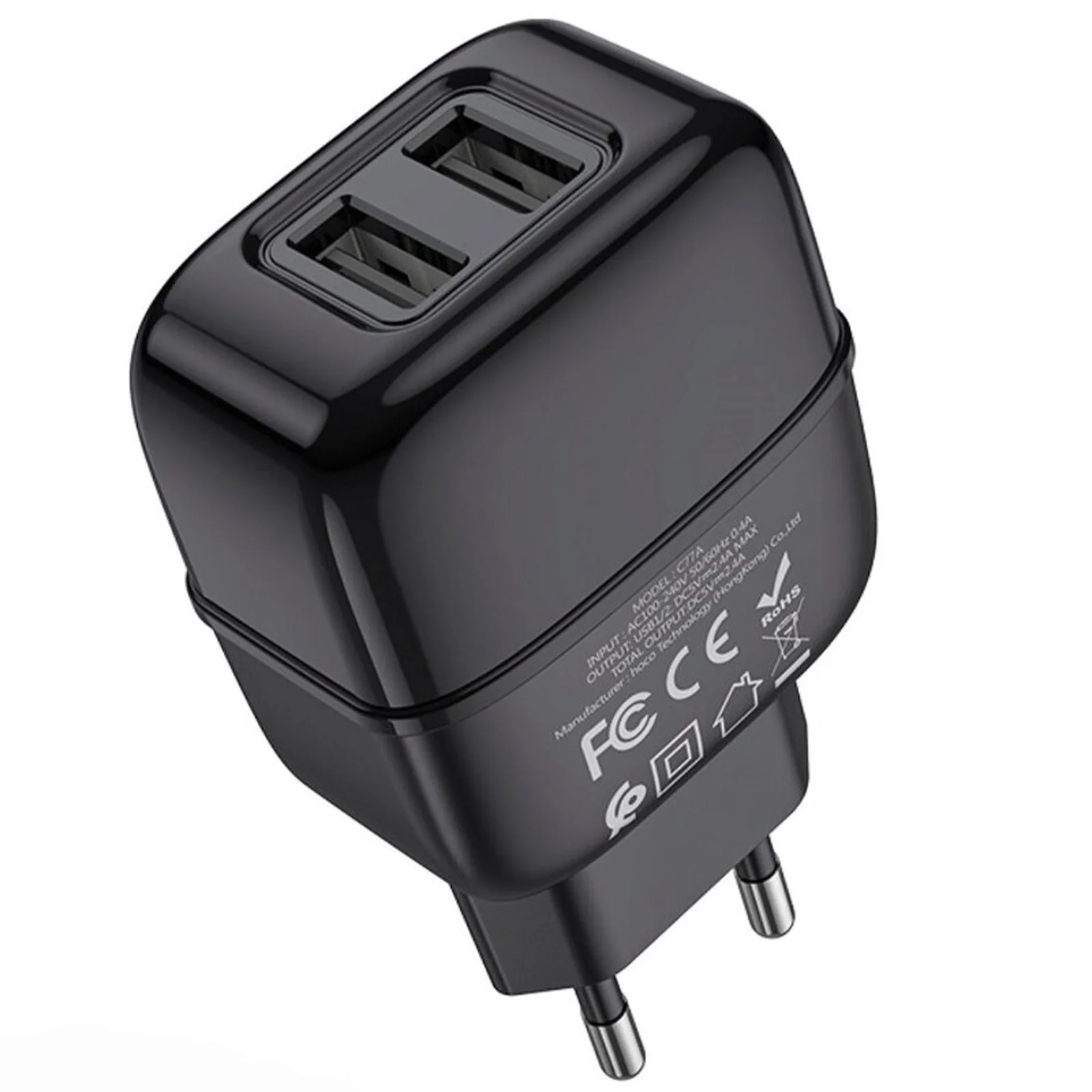СЗУ HOCO C73A (2USB / 2.4A) + microUSB (Чорний)
