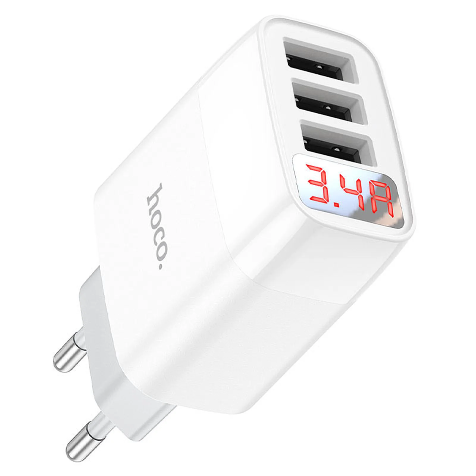 СЗУ Hoco C93A Ease charge 3-port digital display charger Білий