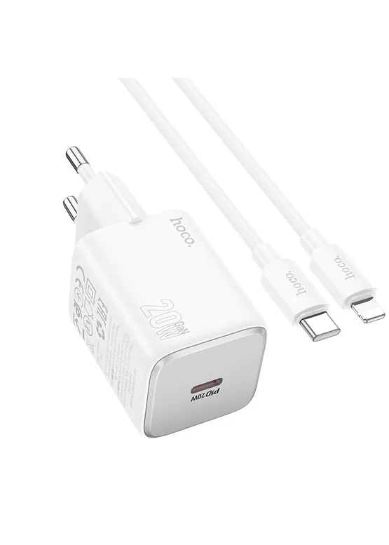 СЗУ Hoco N40 Mighty 1C PD20W + Type to Lightning White