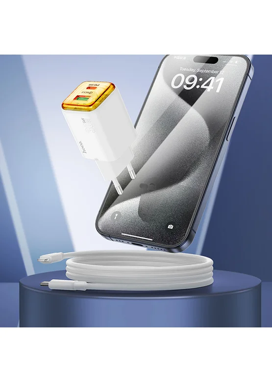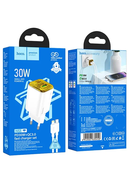 СЗУ Hoco N53 Monsoon PD30W+QC3.0 (1USB-A/1C) + Type-C to Lightning White