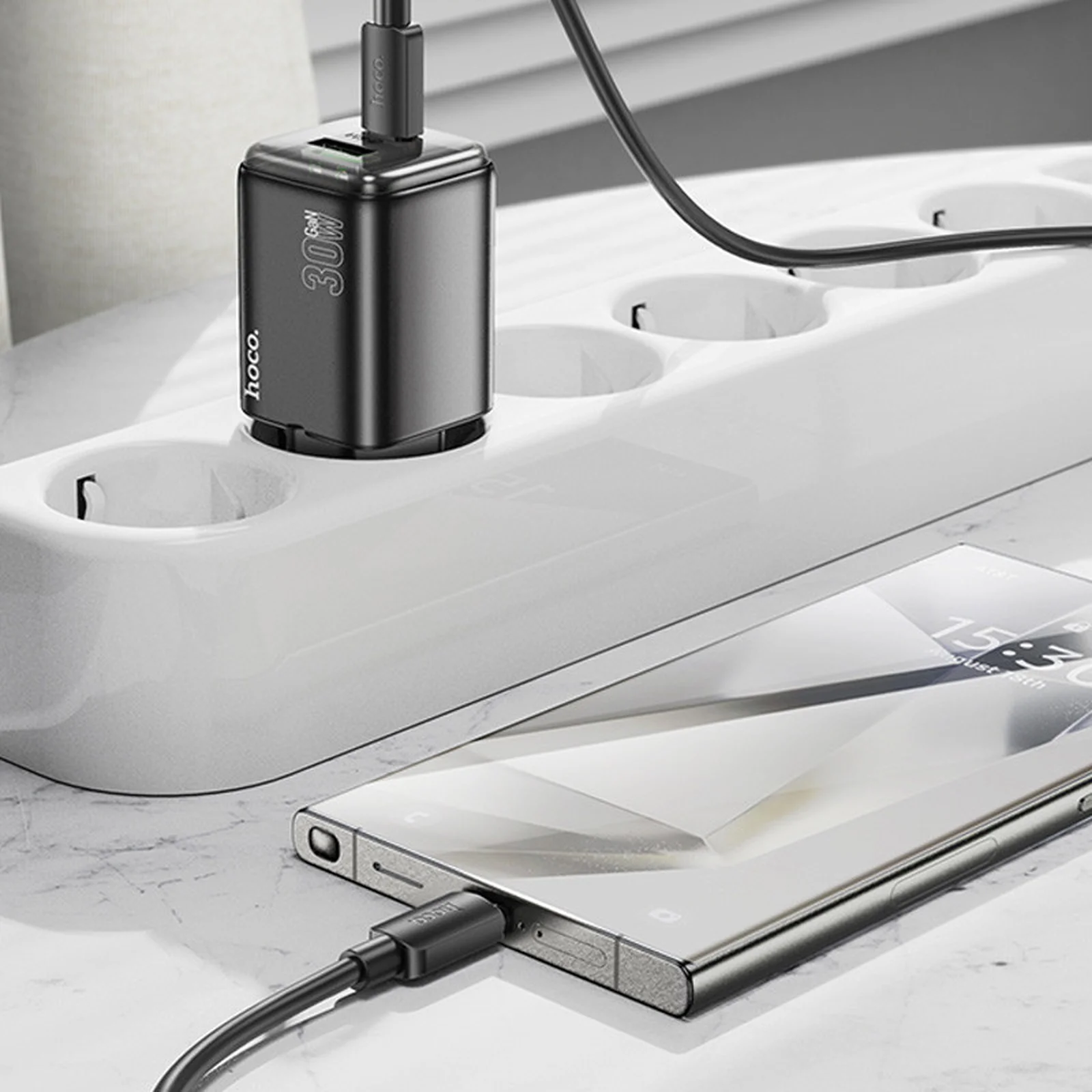 СЗУ Hoco N53 Monsoon PD30W+QC3.0 (1USB-A/1C) + Type-C to Type-C Black